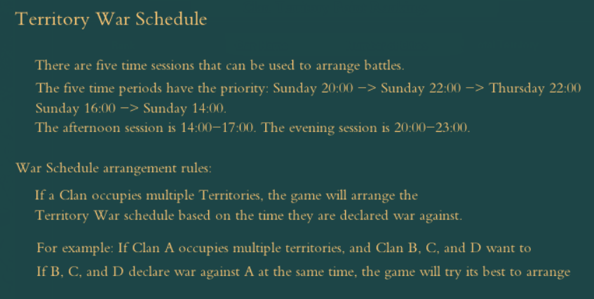 The game will decide this week’s attacking clan of each territory according to their bidding offer, target’s priority, and Declaration Time.