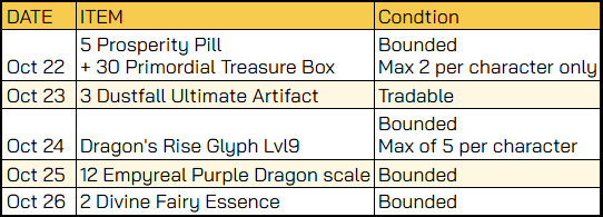Bonus rewards will also be given daily per 1000 gold spent, based on the date of top-up.