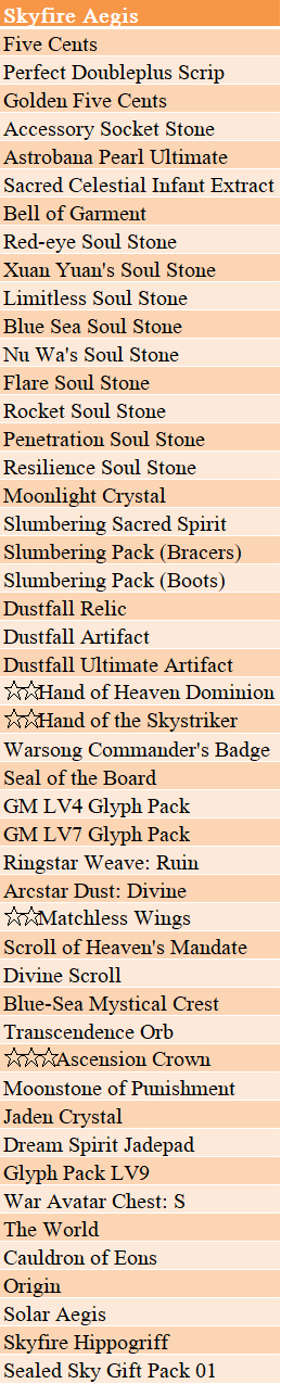 Open a Skyfire Aegis Lottery for a chance to obtain the Cauldron of Eons and Solar Aegis!