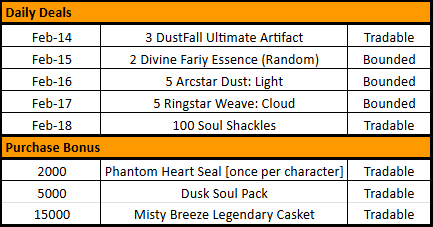 • ₱5,000: Receive 1 Dusk Soul Pack  (Tradable)